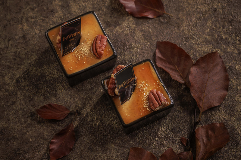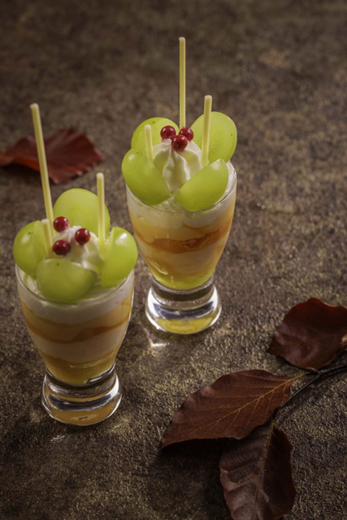 その他、瑞々しいシャインマスカットを使った「シャインマスカットのトライフル」、ヘーゼルナッツの香ばしいクリームにペカンナッツを乗せた「アンブルペカン」などを揃えます。美しいグラスデザートから焼き菓子まで、味わいから香り、食感、外観まで繊細にこだわりつくしたデザートがブッフェ台に並びます!