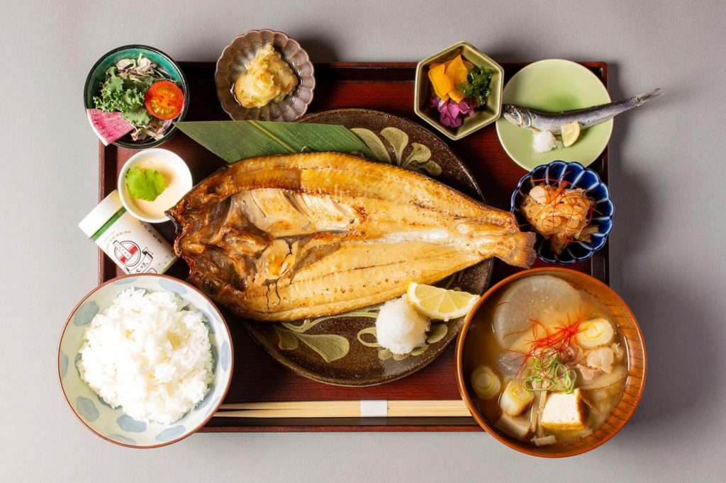 「肉厚とろホッケ御膳」(あおさ味噌汁セット2365円、八海山酒粕豚汁セット2750円共に税込)。
