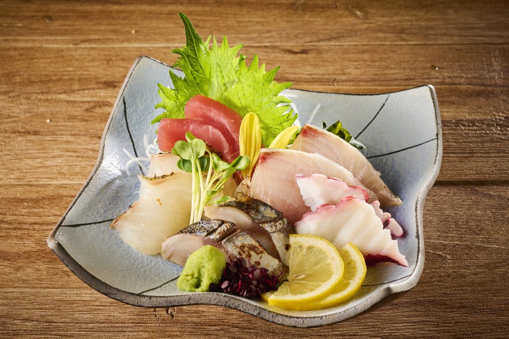 「季節のお刺身盛り合わせ」(1298円税込)。