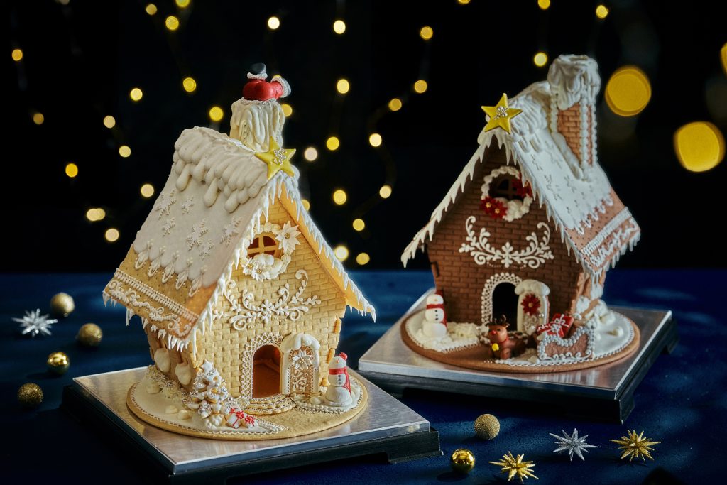 そしてインパクト抜群なのが、おとぎ話に出てきそうなお菓子の家「ヘクセンハウス」。クッキーで作られた高さ約30cmの家の周りに、雪だるまやクリスマスツリー、ソリを引くトナカイや煙突につかえてしまったサンタクロースなど、フレーバーによって異なるデコレーションが施されています。屋根に積もった雪やつらら、壁の細部にまでこだわりが満載。世界の製菓大会で優勝・受賞者を輩出し続けているペストリーチームの技術が光る精緻なスイーツです。