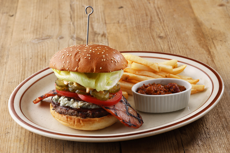 「セントルイス ブルースバーガー」は、ブルーチーズ好きにはたまらないハンバーガー。ビーフ100%のパティに、シャープな塩味とコク深い味わいが特徴の「ロックフォール」というブルーチーズをサンド!