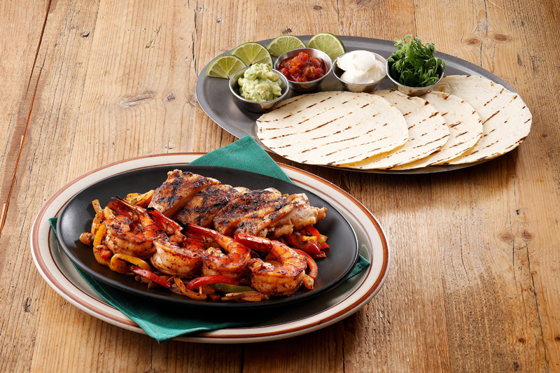 南西部サウスウェスタンからは、テキサス州発祥の「チキン&シュリンプファヒータ」。スパイシーにグリルした具材をトルティーヤで包んで味わう料理。サラダバーの野菜を加えて、自分好みにアレンジするのも楽しみの1つ!