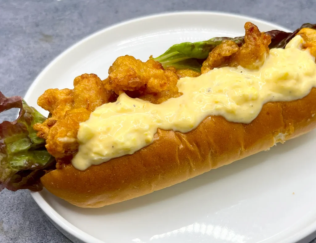 これらの昭和なレトロなメニューは軽食でありながらボリューム満点。例えば、「チキン南蛮ドッグ」は、サクサクに揚げたチキンを特製の甘酢ダレにくぐらせ、それをふわふわのロールパンで包みます。そこにクリーミーなタルタルソースをたっぷりと添えた一品です。