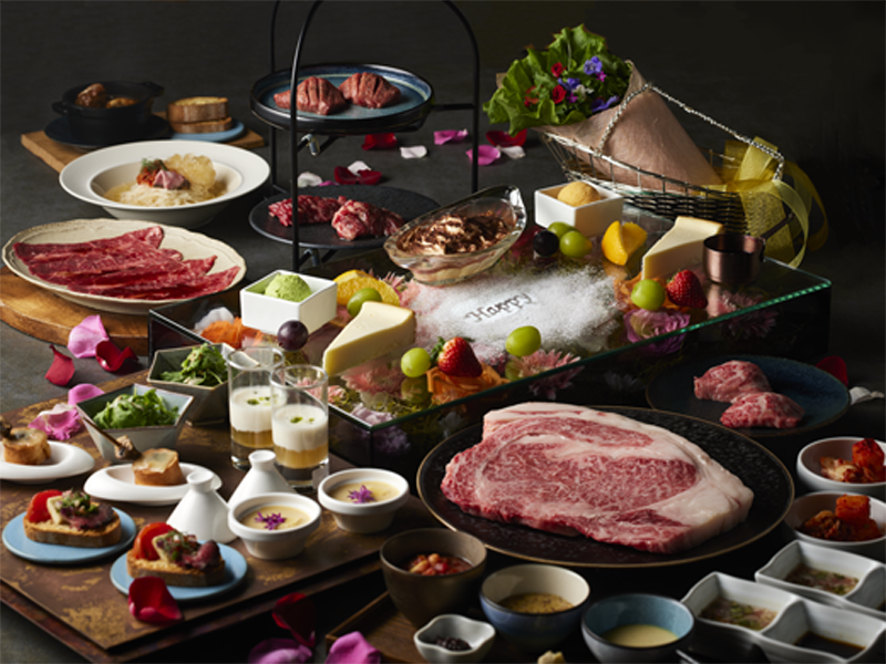 「SPECIALコース」は、看板メニューの厚切り特選霜降り和牛リブロースを始め、厚切り熟成牛タン、厚切り熟成ハラミ、黒毛牛ミスジ焼きしゃぶなどがラインアップ。多彩な部位を贅沢に味わえるコースです。さらにサラダブーケ、〆の食事、デザート盛合せまでコースに!