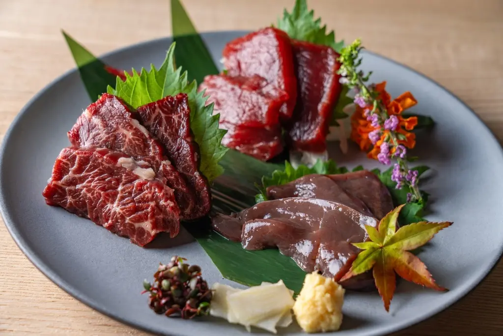 もう1つの看板食材である馬肉は、刺身が◎。青森県産の馬刺しは、希少なハツ刺しや赤身、霜降りなどを用意。