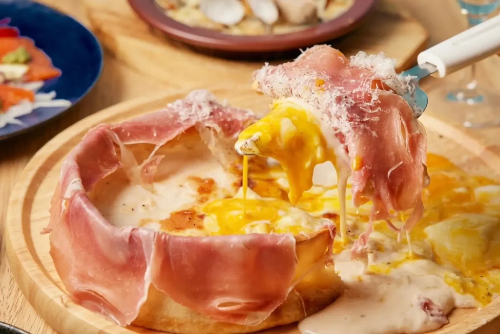 しかし、ドリンクの安さだけが人気の秘密ではありません。料理のクオリティも◎。フランスやイタリアなど世界各国から厳選した10種類以上のチーズ。コンセプトである「チーズ+何か」の融合メニューが勢揃い。中でも看板メニューは、生地を切ると大量のチーズが流れ出す「シカゴピザ」。特に人気の「生ハム温玉シカゴピザ」をはじめ、4種類のシカゴピザ(1749円〜税込)がラインナップ。また、系列店の肉屋から直送された新鮮な赤身肉を使う「チーズプラス厳選の赤身ステーキ」(2178円税込)も大人気。他にもパルメザンをはじめ3種のチーズを贅沢に使った「チーズ!チーズ!チーズ!カルボナーラ!」など、チーズを堪能できるメニューが盛りだくさん。
