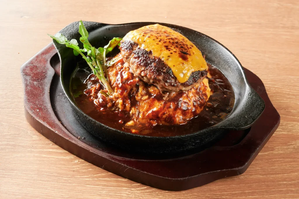 店名が象徴するように、追求しているのは肉と玉子の完璧な一体化。肉と玉子、そして相性抜群のチーズ。これらが皿の上で融合し1つの作品のような美しさを放ちます。ふわとろの玉子の上に、存在感のあるハンバーグが贅沢に鎮座。オムライス専門店としての18年の歴史が、このボリューム満点の一皿にギュッと凝縮されています。