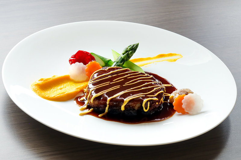 メインディッシュ「福島県産あだたら豚極のラグー ディジョン風」(3000円税込、メインディッシュとビュッフェ、デザートを含む)。