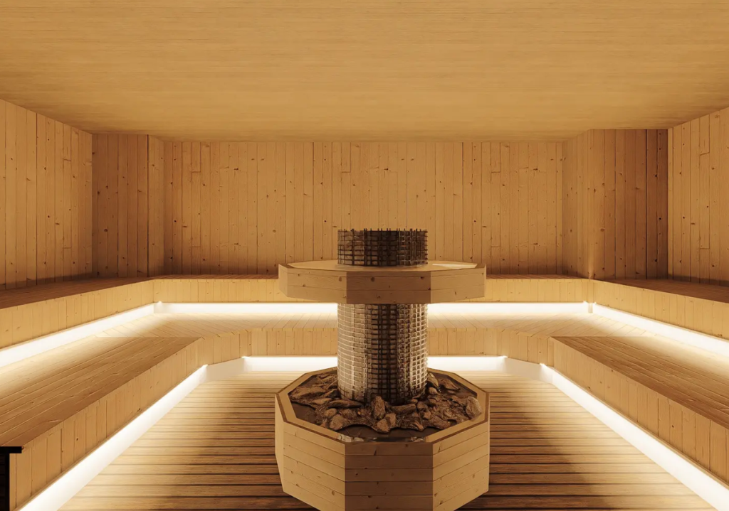 サウナは本格的なフィンランド式。約30人くらい一気に入れる広さを誇り、温度、湿度、CO2濃度、香り、心地良さのサウナ5大快適要素をクリア。オートロウリュ機能も完備。サウナ後は、水深90cm、16~18℃に保たれた水風呂で、全身をクールダウン♡ もちろん、最後のととのえ、外気浴スペースも完備。