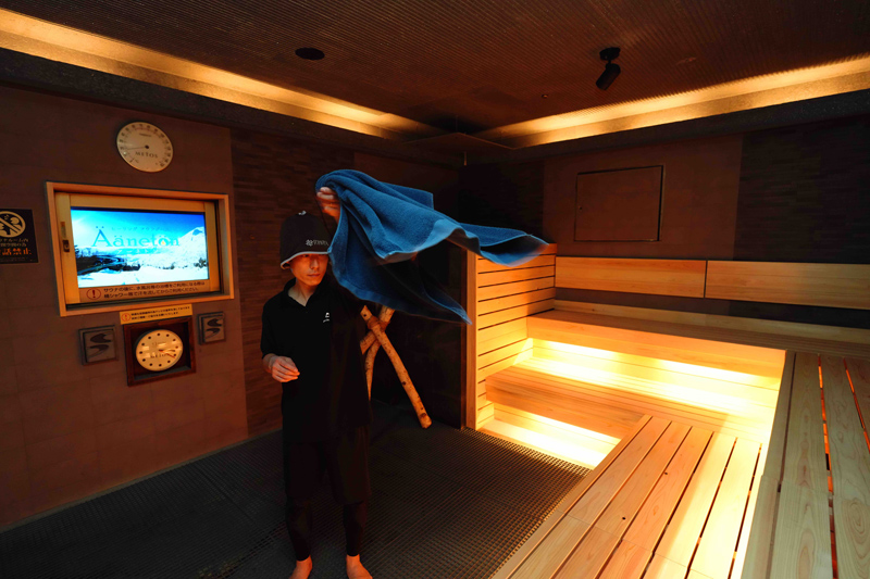サウナイベントも実施。男性用サウナと女性用のフィンランドサウナでは、北海道産ラベンダーをブレンドしたアロマを使うアウフグースや、北海道でよく飲まれているお茶を使った「とうきび茶アウフグース」を実施。さらに日曜のサウナイベントに参加した人には、サウナ後の外気浴に最適なナチュラルアイランドのジェル「自然な、めぐりジェル。」を、もれなくプレゼント。