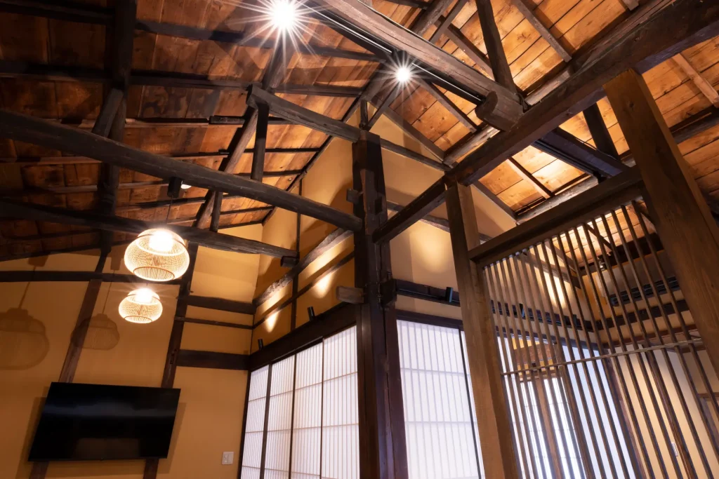 宿坊は和室や土間キッチン、そして檜の浴槽ま備えています。また庭をゆっくり眺められる縁側も! 宿泊は1名〜8名まで対応。
