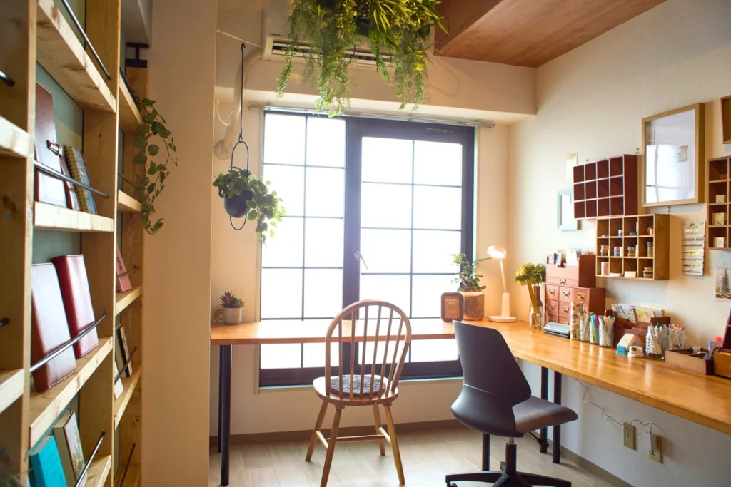 時間貸しの完全個室。だから、周囲の話し声や視線を気にせず、大きなデスクに自分のこだわりを思う存分広げても◎。狭いテーブルではできなかった「文具をたくさん並べて書く」という贅沢を楽しめます。