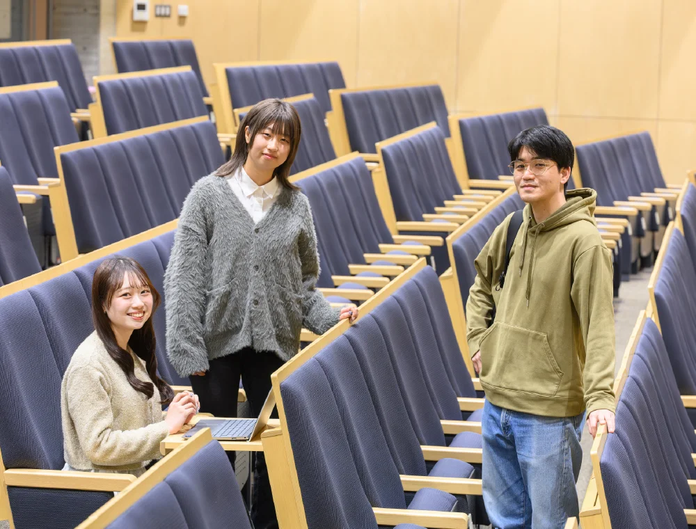 日本大学生物資源科学部には11の学科があります。学びの領域は幅広く、まさに「細胞から、地球まで」。生き物や地域課題に関心のある高校生の皆さんにとって、いずれの学科も興味津々なのではないでしょうか。そこで今回は、国際共生学科(旧くらしの生物学科入学)の石川紫央里さん、森林学科(旧森林資源科学科入学)の末永京さん、海洋生物学科(旧海洋生物資源科学科入学)の田中梨咲さんという3学科・3名の学生さんに集まっていただき、授業のこと、キャンパスのこと、将来の夢を語っていただきました。