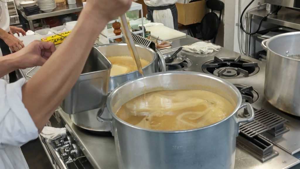 「豚骨風」ではなく、実際に炊き出した豚骨