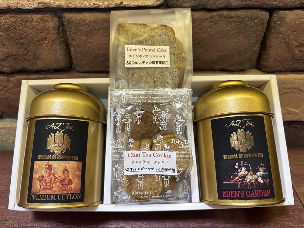 紅茶はA/Bセットから選べ、ベリーやバラなどをブレンドした華やかな香りが魅力でAZ Teaで不動の人気No.1の紅茶の「エデンの庭」。また、地中海沿岸で育った本物の天然ベルガモットエキスを使用した、最上級の本格派アールグレイの「インペリアルアールグレイ」など、AZ Teaの人気4銘柄を楽しむことができます。ギフトに添えられた焼き菓子とコースターは、どちらも特別な背景を持つ限定品。スリランカと日本、それぞれの手仕事のぬくもりが詰まっています。