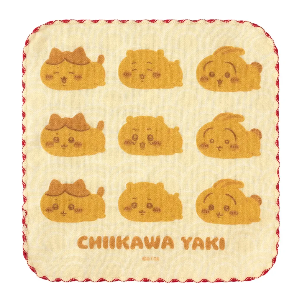 「ちいかわ焼き」になったちいかわ、ハチワレ、うさぎたち。「ちいかわ焼き」のオリジナルイラストを使用したグッズも多数展開。マスコットやキーホルダー、タオルなど、ファンなら手に入れたいアイテムが勢揃い♡