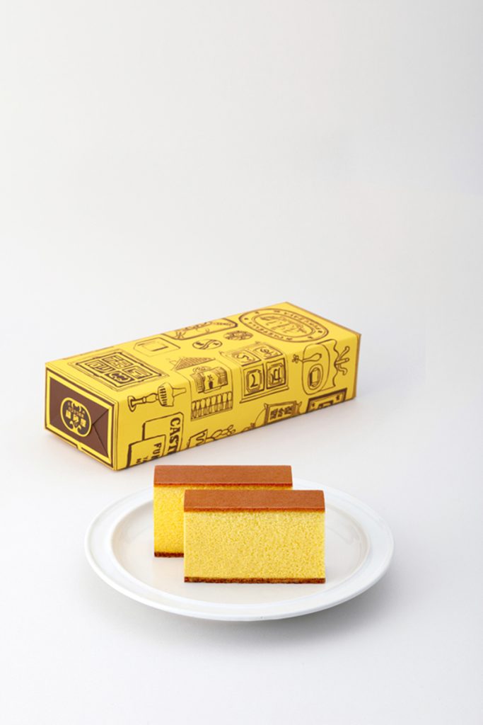 「カステラ小切れ1号」は、「福砂屋(ふくさや)」の代表作。寛永元年(1624年)の創業以来、伝統の古法を守り続ける老舗の味が自慢。しっとりとした口当たりと深みのある甘さが特徴。10切れに分けられた。食べやすい形で提供。