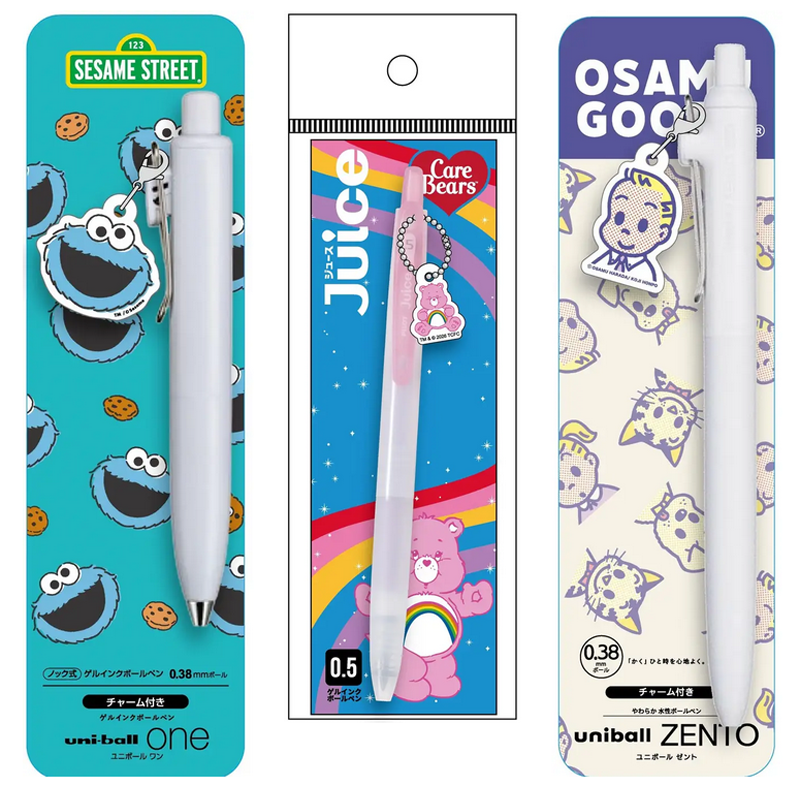 持っているだけで気分が上がる、かわいいデザインの筆記具も多数。「キャラクターチャーム付きボールペン」は、「セサミストリート」や「ケアベア」など親しみやすいキャラクターのチャーム付きペン。全13種類。こちらはロフトで先行販売。