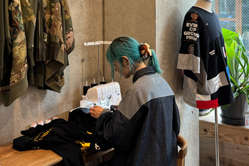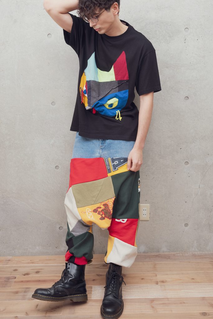 店内には、ステッチやペイント、カラフルなパッチワークを組み合わせたユニセックスのリメイクアイテムが充実。誰でも着やすく、ワクワク楽しい気分になれるような服を取り揃えています。