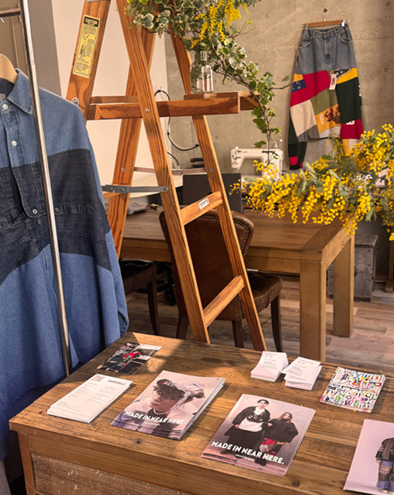お店の名前は「NEAR Harajuku(ニアーハラジュク)」。ここは、リメイクウェアを展開する「LOWRUNDER(ローランダー)」のフラッグシップストア。古着や未使用の生地をアップサイクルし、様々な素材を組み合わせながら唯一無二の衣服を制作するローランダーのリメイクアイテムが揃います。「その時間に、あたらしい命を。」をコンセプトに、15年間もリメイク商品を制作し続けています。