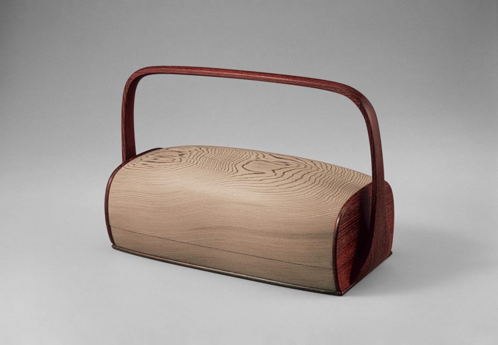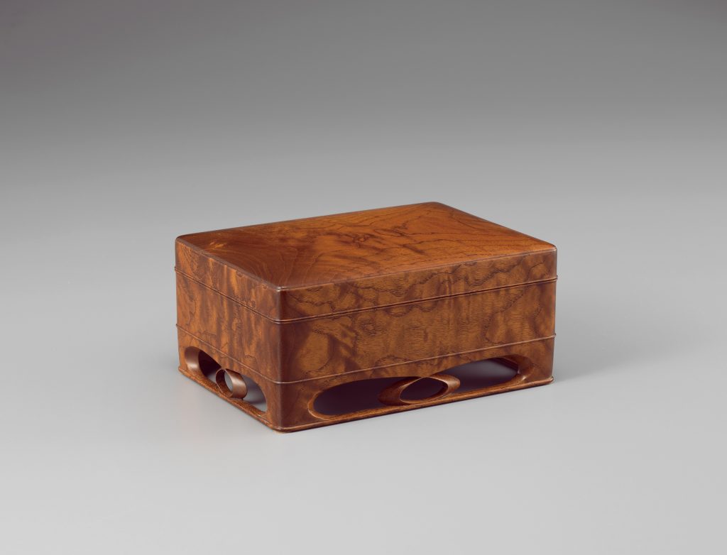 本展のもう1つの大きなテーマ「蘇れ御蔵島桑」。桑材の最高峰が、御蔵島(みくらじま)桑。島崎氏はこの貴重な木材を巧みに用い、その独特の木目や色合いを最大限に引き出した作品を生み出しています。会場では、御蔵島桑を用いた小抽斗(こひきだし)や提箱(さげばこ)、水輪床脚小箱(みくらぐわすいりんしょうきゃくこばこ)など、見る者を惹きつける多様な作品を展示。その昔、日本の伝統美が生活の中で活きていた時代の日本古来のインテリア。その作品1つ1つから、木の生命力や、それを活かしきる職人の情熱を感じられます。また神代杉など、他の個性豊かな木材を使った作品も並び、木工芸の奥深さと多様な表現に触れられます。