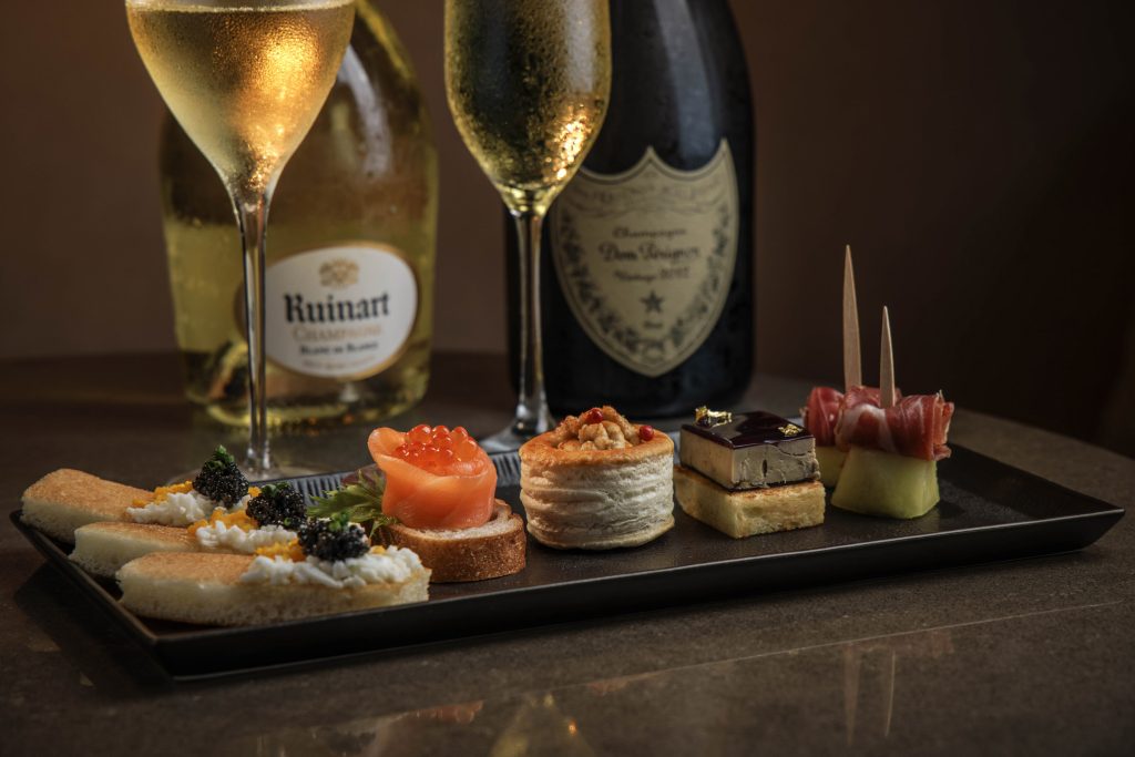 「スタンダードプラン」と「アップグレードプラン」共に120分のフリーフロー付き。ルイナール、またはドン・ペリニヨンの他、赤か白ワイン、ビール、カクテル、ソフトドリンクをラインナップ。さらにキャビア メルバトーストを始めとする上質なアペタイザーもセット。