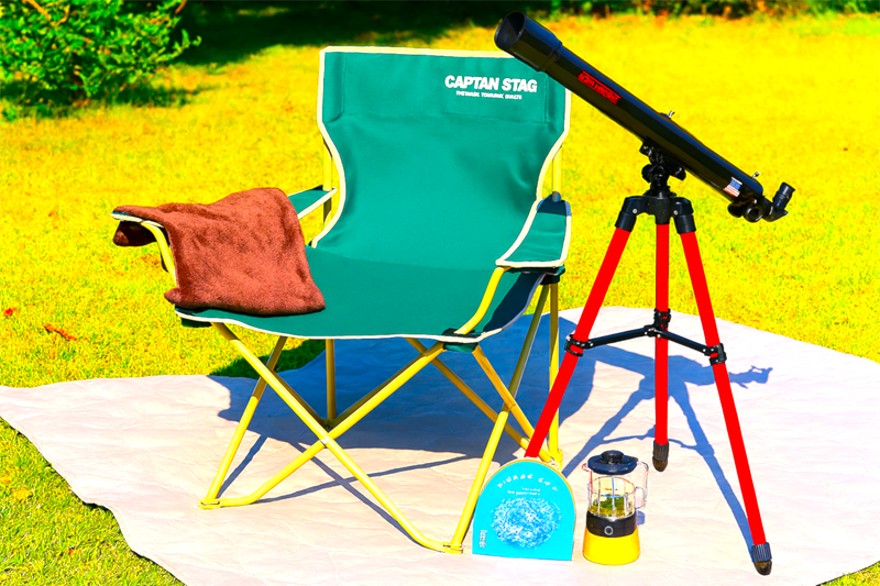 ホテルフロントでは、星空体験をサポートする備品を無料で貸し出し。ランタン、レジャーシート、チェア、ブランケット、天体望遠鏡の貸し出し品を用意。さらに、星座早見表を1組につき1枚プレゼント。ただし、貸出備品は数に限りがあるので要注意。
