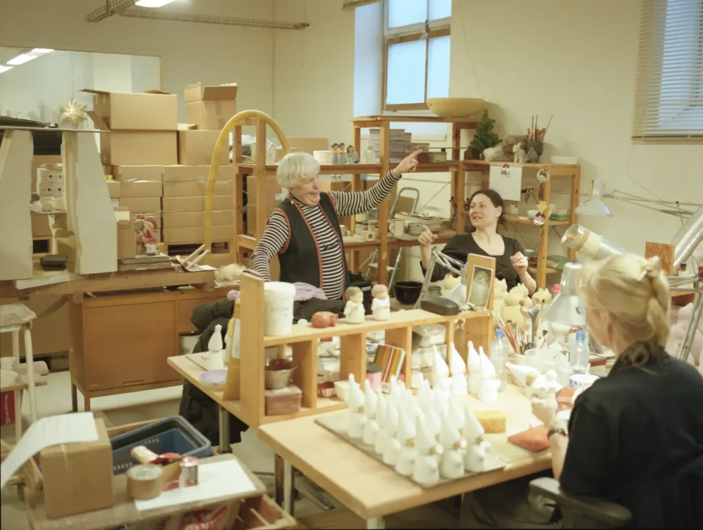 本展の第1部ではリサ・ラーソンのモノ作りのプロセスを深く見て、知ることができます。粘土から生み出された原型作品、彼女が実際に使用していた道具類やスケッチなどを展示。ライオンや猫などお馴染みの作品の制作工程も展示。さらに工房で働く職人たちの仕事ぶりを伝える映像や写真を通してたっぷり展示。