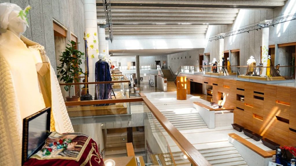 そんな新国立劇場の1階のメインエントランスホールと2階3階にあるギャラリーで、舞台衣装を集めた展覧会を開催中。その名は「うつろい―Utsuroi―」。2026年3月1日(日曜)までの期間限定で、様々な舞台で使用された舞台衣裳を趣向を凝らした形で紹介。