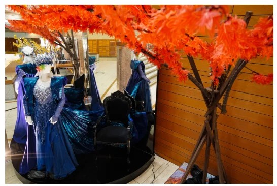 「魔笛」で使われた夜の女王の衣装と、舞台装飾の紅葉。