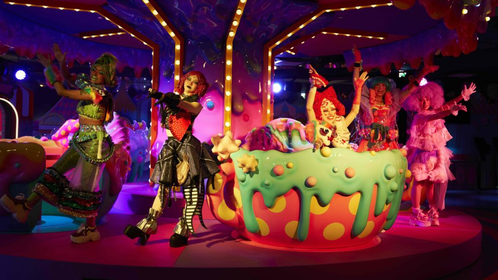 ここは、「KAWAII」カルチャーの第一人者であるアーティスト増田セバスチャン氏が総合プロデュースを務めるライブエンターテイメント体験施設。ただ施設を見て回るだけではなく、ショー、音楽、フード、ゲームといった要素を1つの物語として体験。60分間のライブエンターテインメントを体験。