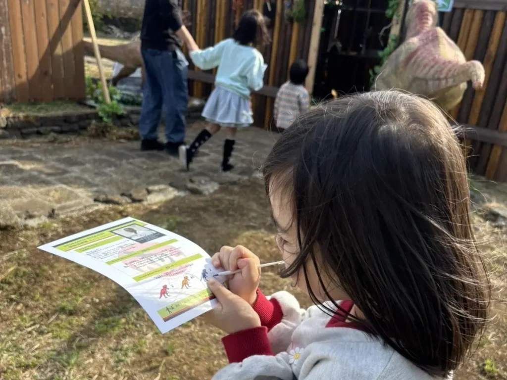そして、単なる展示鑑賞に留まらないのが、この恐竜島の醍醐味。来場者は調査隊の一員となり、行方不明の博士が残した謎の解明に挑みます。受け付けでもらった調査シートを手に、恐竜の生態や手がかりを探索。島を巡りながらミッションを解き明かしていく過程は、没入感たっぷり。未知の領域を切り拓くような、知的好奇心を満たす体験が待っています。