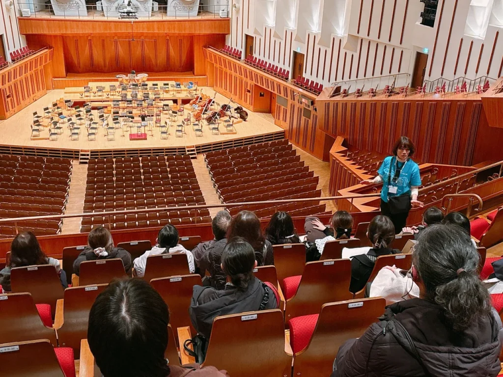 5月29日(金曜)と5月31日(日曜)は、世界最大級のパイプオルガンを誇るコンサートホールの裏側をご案内。公演に向けてオーケストラのセッティングが整った、緊張感と期待が混ざり合う空間に入ります。ホールの独特な機構や音の響きについての解説は、音楽鑑賞がより深まる貴重な体験。館内の至る所に展示された美術品を巡る時間も用意され、建築としての美しさも存分に堪能できます。